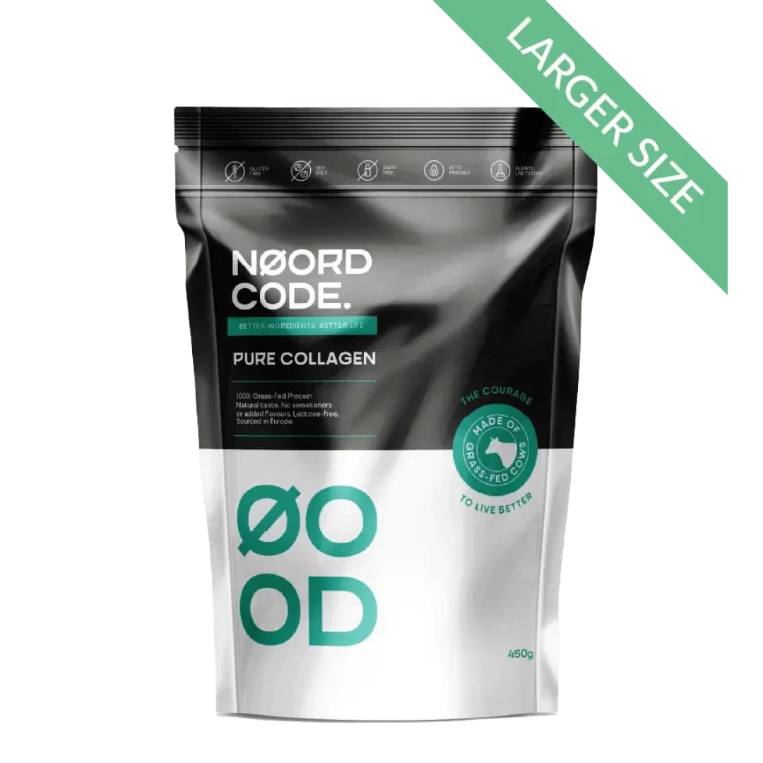NoordCode Pure Collagen bietet eine Lösung für Kollagenmangel, indem es eine hohe Menge an funktionellen Lysin- und Prolin-Aminosäuren und ein optimales Aminosäureprofil bietet, und das alles ohne Zusatz von Süßstoffen, Aromen oder Konservierungsmitteln. Es wird enzymatisch verarbeitet, um die Peptide unbeschädigt zu lassen, was es hoch bioverfügbar und leicht verdaulich macht.