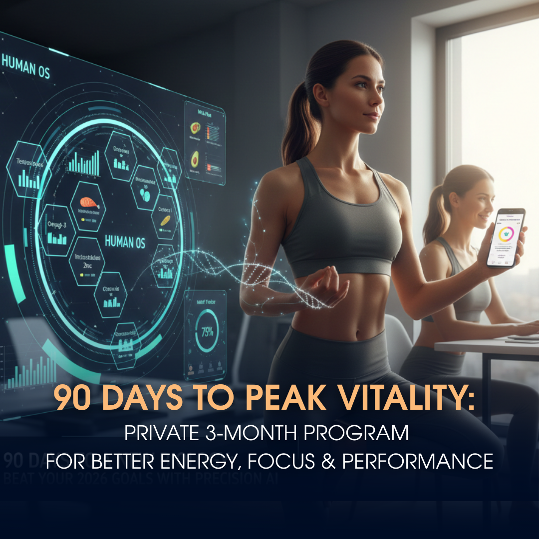 Resoluties voorbij: Upgrade je menselijke OS voor 2026 Een datagestuurd stappenplan van 90 dagen om voeding, slaap en prestaties te optimaliseren. Vertrouw niet langer op wilskracht. Volg een bewezen systeem dat is ontworpen door de auteurs van het Biohacker's Handbook om van gezondheidsobstakels naar piekvitaliteit te gaan. De programmapijlers HET LAB WERK 28-biomarker Swiss Test om uw biologische basislijn vast te stellen. DE PRECISIE-AI BOT 1 jaar Holohabits AI App voor realtime gewoonteaanpassingen. DE COACH 1-op-1 strategiesessies + doorlopende groepsondersteuning. DE GROEP Collectief momentum met 100% gepersonaliseerde biologie.
